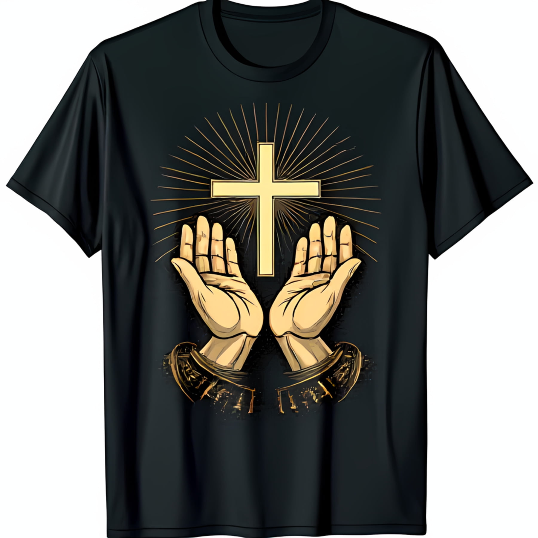 Black T-Shirt with Glowing Golden and Praying Hands Design Faith & Hope